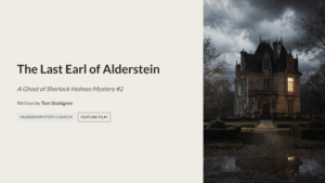 The Ghost of Sherlock Holmes in The Last Earl of Alderstein When the Earl of Alderstein is found stabbed inside his locked study, and a key witness dies in a locked bathroom, a sharp female detective teams up with the ghost of Sherlock Holmes to prove the impossible—that both “suicides” were actually murders. See The Ghost of Sherlock Holmes in The Last Earl of Alderstein synopsis.